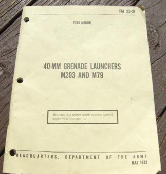 | 40mm Grenade Luncher M-203 | M-203 & M-79 Grenade Launcher FM23-31 100p illus., index.