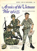 | Armies of the Vietnam War 1962-75.. | Philip Katcher provides an overview to the conflict that engulfed Vietnam following the division of the country into two along the 17th Parallel in 1954. The uniforms and insignia of the US forces, including the army, Special Forces, air force, navy and marine corps, are dealt with in detail, together with those of the ARVN, the Allied Forces (such as the Royal Thai Army and Korean troops), and also the Communist NLF (Viet Cong) and NVA forces. Mike Chappell's colourful artwork provides plenty of detail to accompany this authoritative text. Contents Historical Background · Uniforms The U.S. Army · The Special Forces · The U.S. Air Force · The U.S. Navy · The U.S. Marine Corps · South Vietnamese Forces · Allied Forces · Communist Forces · The Plates 48p.