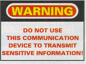 Warning Kleber weiss 10 x 7 cm DO NOT USE THIS COMUNICATION DEVICE TO TRANSMIT SENSITIVE INFORMATION