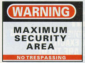 WARNING MAXIMUM SECURITY AREA NO TRESPASSING