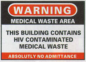 Warning Kleber weiss 10 x 7 cm WARNING Medical waste Aera This Building Contains HIV Contaminated Medical Waste ABSOLUTLY NO ADMITTANCE