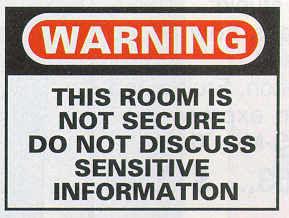 Warning Kleber weiss 10 x 7 cm WARNING THIS ROOM IS NOT SECURE DO NOT DISCUSS SENSITIVE INFORMATION