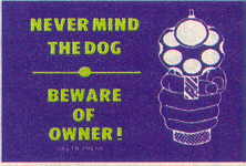 Warnkleber blau mit weissem oder orangem Aufdruck. 10 x 7 cm