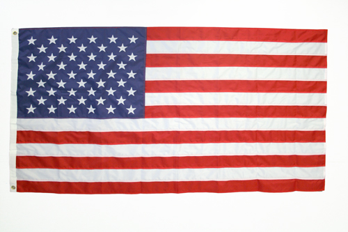 1m x 1,6m Grosse U.S. Fahne. Messing Oesen zum befestigen Grundmaterial: Schweres 300D Nylon mit aufgestickten Sternen. Geeignet für drinnen und aussen.