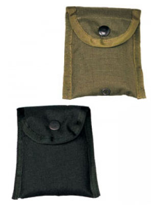 Cordura Tasche mit Druckknopfverschluss und Alice Clips. 11,5x11,5 cm wird sowohl als Kompasstasche wie auch für die Verbandspatrone benutzt. Wird meist an der Koppeltrage oben rechts getragen. WKII bis bis Anfang 70er Jahre waren diese Taschen noch aus dem dicken schweren Canvas Material. Haben auch von diesen noch einige wenige an Lager.