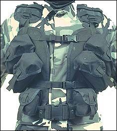 Verbesserte LBE Veste mit schräg aufgesetzten Mag. Taschen für den schnelleren Zugriff. Für insgesamt 8 Magazine und 2 Handgranaten. Befestigungspunkte für Aliceclips und Dutybefestigung. Metall D-Ringe für Buttpack. Sehr breite und gut gepolsterte Schulterteile. Fastexschnallen, Drainageöesen u. Rettungsgriff usw. eben von BlackHawk.