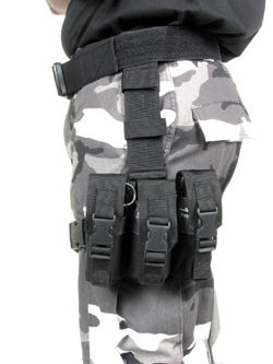Oberschenkeltasche für 2 St. MP und 2 St. Pist. Mag. Passend für UZI, MP-5 und alle Standart Pist. Mag. Zwei Befestigungsbänder für Oberschenkel und verstellbarkeit wie alle BH Produkte.
