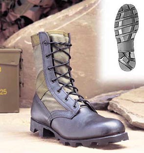 Cordura / Leder Dschungelstiefel mit Schnellzug Oesen und vulkanisierter Dschungel - Gummisohle. Lizenzfertigung in China Endkontrolle bei Rothco USA. Gr. 38 - 45 keine 1/2 Grössen dafür auch in breit erhältlich. Sehr gutes Preis/Leistungs verhältnis.
