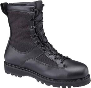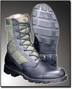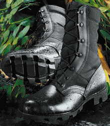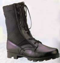 Voll-Leder Kampfstiefel mit Schnellzug Ösen, gepolstertem Abschluss und vulkanisierter Gummisohle. Lizenzfertigung in China - Endkontrolle USA ein super Preis/Leistungsverhältnis.