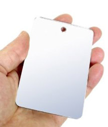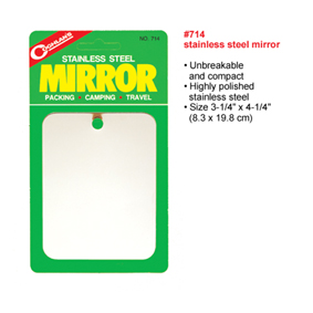 7,5 x 10 cm. Unzerbrechliches Acryl Material, kann als Notsignalgeber (Lichtzeichen) oder als Camping-Spiegel verwendet werden. Grösse: 7x11cm Gewicht nur 15 Gramm