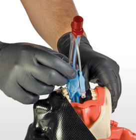 A true one-handed tourniquet, the CAT completely occludes blood flow of an extremity in the event of a traumatic wound with significant hemorrhage. The CAT uses a windlass system with free-moving internal band to provide true circumferential pressure to the extremity. Once tightened, the windlass is locked in place when bleeding has ceased. A Velcro® strap is then applied to secure windlass during casualty evacuation.