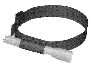 Kopf-Licht-Band. 2,5 cm Breit. Mittels Klett einstellbares Elastikband. Befestigungs- Lasche für Mini Mag-Lite oder ähnlich grosse Lampen. Ermöglicht beidhändiges arbeiten im Lichtkegel der Lampen. Farbe schwarz.
