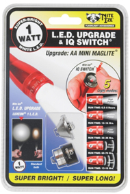 Nite-Ize IQ Switch is a multi-function easy to install push button switch to upgrade your AA mini-maglite. Switch provides 5 light modes: 100% power, 50% power, 25% power, slow strobe, and fast strobe. It also extends battery life to last four times longer
