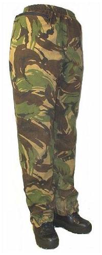 GORE-TEX Ueberziehhose Holland Corduramaterial in der Farbe DPM. Bund mit Gummizug und sehr weit geschnitten, mit Reissverschlüssen und Gummizügen an den Beinabschlüssen, somit kann die Hose auch mit den Kampfstiefel angezogen werden.