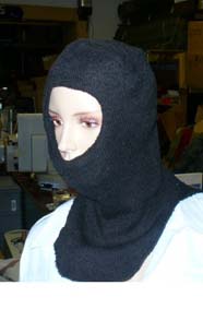 The balaclava is constructed of two piles of a black wool or a wool blend knitted cloth with a wind barrier interlining.