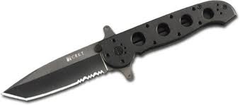 Klappmesser für Einhandöffnung mit der Flipper Aid-Oeffnung. Gesammt Länge geschlossen: 10.8cm. Klingenlänge: 7.9cm Klingendicke 2,5mm Tantoform mit 1/2 Wellenschliff. AUS 6M Klinge mit 55-57 HRC = Rockwell Härte, mit nicht reflektierendem Finish. Rassiermesserscharf geschliffen. Griff: ebenfalls aus rostfreiem Stahl mit schwarzen Zytel Griffschalen und schwarzem Gürtelclip. Gewicht: 105 Gr. Gemacht für den härtesten Einsatz. Columbia Rivers U.S. Pat. No. 5.596.808 Spezial Preis