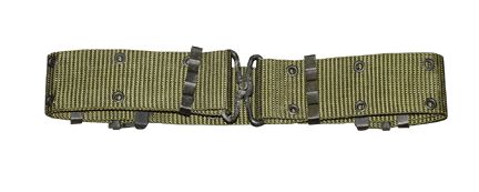 Gebrauchte Lochkoppel oliv teils aus Canvas Webbing und Messingverschluss, (älteres Mod.) je nach aktuellem Angebot. Etikett mit NSN No. teils herausgerissen, da sehr stark gebraucht.