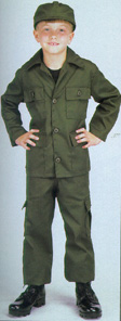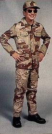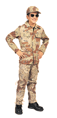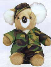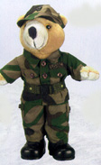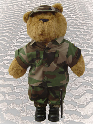 Teddybär in Tarnanzug und Kampfstiefel. Mit Mütze und Dog-Tags.