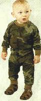 Tarnfarbige Säuglingshosen in 3 Grössen 3-6 Monate, 9-12 Monate, 12-18 Monate.