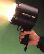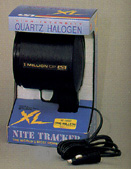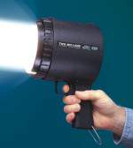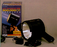 LSI XL 500 Nite-Tracer. Quarz Halogen Handscheinwerfer mit einer Leistung von 5oo ooo = 1/2 Milion Candlepower. Ca. 10 x heller als ein Autoscheinwerfer. Mit eingebautem Akku der über den Zigarettenanzünder 12 Volt oder über 220 Volt Netzkabel geladen wird.