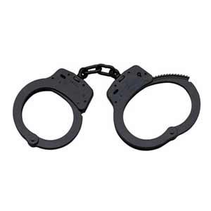 Brünierte Stahlhandschelle von S&W Art.: 100BL Stahl, brüniert mit Kettenglieder. Standartschlüssel, Seriennummer, Arretierbar.