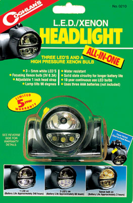 Kopf oder Helmlampe Umschaltbar, LED für Nahbereich oder Xenon für weitere Entfernung. Wasserdicht, Schlagresistent, Brenndauer: 1 LED 240 Std. 3 LED 80 Std. 3Volt Xenon 3 Std. Garantie: 5 Jahre Betrieb mit 3St. AAA Batterien. Separat bestellen.