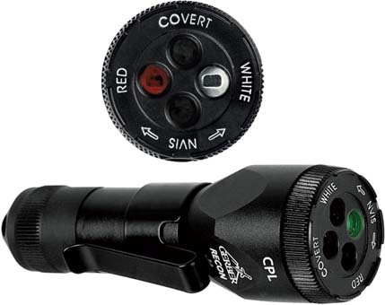 Zwanzig Taschenlampen in einer! Jede LED hat 4 Leuchtstärken: Abgeblendet (5%); Mittel 1 (25%); Mittel 2 (60%); Hell (100%) sowie eine Stroboskopfunktion (100%) C4®-LED. 2-3x heller als eine High-Flux-LED! Stosssicher mit 50.000 Stunden Lebensdauer Einrastender Drehwahlschalter, den man herausziehen muss, um ihn zu drehen, verhindert versehendliche Änderungen des Betriebsmodus und ermöglicht die Auswahl von 4 Beleuchtungsquellen: Weisse C4-LED; IR-LED; rote LED; blaue LED - taktiler Indikator am Drehschalter für die IR-LED-Position Druckschalter aktiviert/deaktiviert die ausgewählte Beleuchtungsquelle, beginnend mit niedriger Leistung bis hin zur hellsten Stufe in 4 Schritten Gummikuppeltaster und einrastender 4-Positionen-Drehwahlschalter, den man herausziehen muss, um ihn zu drehen, mit taktilem IR-Indikator erlaubt leichte Bedienung, selbst mit schweren Handschuhen Zweimal kurz drücken = Stroboskopbetrieb in jeder Farbe, auch IR.