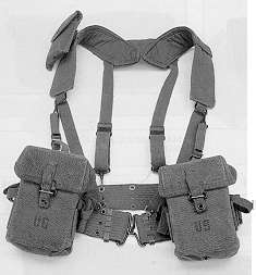 Lochkoppel komplett mit H-Koppeltrage und 2 St. M-14 Mag.taschen. Aus der Korea- und frühen Vietnam Aera. Zustand gebraucht Sammlerqualität.