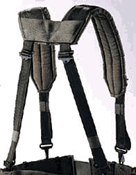 Koppeltrage in H - Form aus Canvas-Cordura mit Messinghacken aus der Zeit des Vietnam Krieges. Gebraucht guter Zustand.