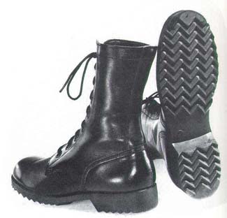 Lederkampfstiefel des U.S. Marine Corps. Schwarzer halbhoher Schnürstiefel, ungefüttert mit Waffelsohle. Sehr eng bemessen. Auslaufmodell