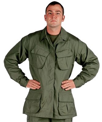 BDU Jacke im original Schnitt der Vietnam Aera. 100% Cotton Rip7Stop Schräge Brusttaschen usw. Nur noch sehr wenige Grössen S lieferbar.