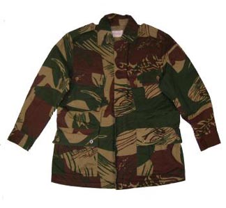 Tarnanzug der Rhodesian Rangers im Tarnmuster für die Afrikanische Savanne. Original aus den 70er Jahren. Fabrikneu, Lagerware welche auf einer Farm in Süd-Afrika gelagert wurde. Diese Anzüge wurden auch von den zivilen Militzen und Söldnern getragen, welche die Englichen, Holländischen und Deutschen Farmer beschützten. Da ein UN Embargo bestand, wurden keine Hersteller Etiketten sondern nur ein Grössen Tag eingenäht. Hose u. Jacke Div Grössen. Neu