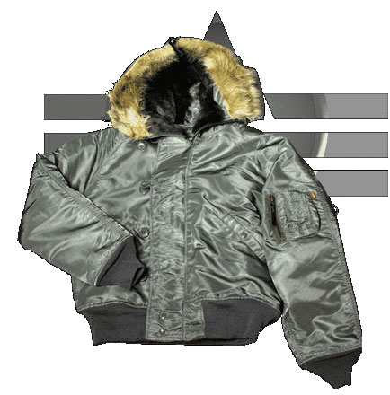 Diese Kälteschutzjacke wurde speziell für das strategische Bomberkommando in der Arktis entwickelt. (Die Bomberbesatzungen taten in Startbereiten, vorgeheizten B-52 Bombern Schichtdienst. Die Jacke wurde nur beim Schichtwechsel, auf dem Weg zur Unterkunft übergezogen. Temperatur unterschiede von 60o C waren dabei keine Seltenheit. Die grosse, durch Reisverschluss teilbare Kapuze wurde dabei über dem Helm getragen. Der schwere Reisverschluss wird durch einen breiten Knopfflapp abgedeckt. 2 Taschen seitlich mit Druckknopf Verschluss, diese können auch geöffnet und als Durchgriff zum Kombi benutzt werden. Bund und Ärmelabschluss aus Elast-Web. Material: Wind- und Regendichtes Nylon-Tafta mit Hohlfaserfüllung. Kunstpelzbesatz.