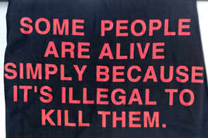 SOME PEOPLE ARE ALIVE SIMPLY BECAUSE IT'S ILLEGAL TO KILL THEM. Schwarz mit rotem Aufdruck. 100% Baumwolle.