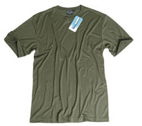 Farbe oliv, Poly/Co mit schwarzem Globe&Anchor Aufdruck auf linker Brust. US Made by Camp Bellesville Apparel SemperFi NSN No.: 8415-01-443-5377 usw.