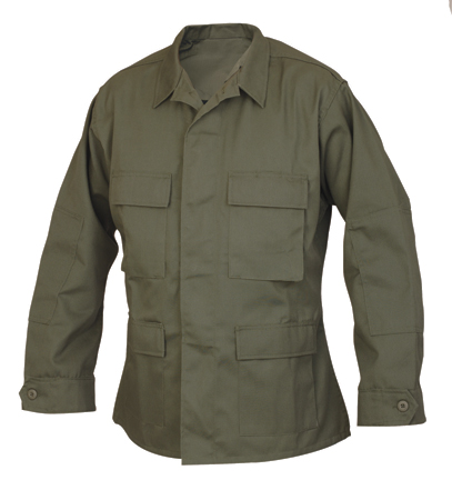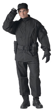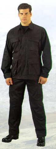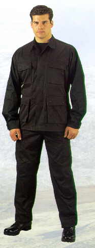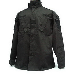 Neue Uniform in schwarz Ausführung. Im Schnitt identisch mit ACU. 5 Taschen Schräge Brusttaschen, Oberarmtaschen und Schreibzeugtasche am linken Vorderarm. Alle Taschen mit Klettflapp. Stehkragen und Manchette mit Klett, Frontreissverschluss und Klett Abdeckung. Doppelte Ellbogen mit Fach für Schoner Einschübe. Poly/Co Rip-Stop Gewebe. 65%Polyester/35%Baumwolle. Leicht, Abriebfest, trocknet sehr schnell und franst nicht aus. Hergestellt in China aber in US Auftrag.