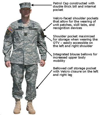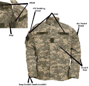 Neuster Tarnanzug der US Army. ACU = All Camo Utilities. Die Tarnfarbe für alle Einsatzgebiete universell einsetzbar. Das Pixel Tarn erschwert die Sichtbarkeit durch optische Geräte, welche auf jeder Ebene eingesetzt werden und das Bild in digitaler Auflösung senden. Mit den neusten Änderungen was diesen zum modernsten und praktischsten Tarnanzug machen. Zudem sind auf den Aermeltaschen, für den Militärischen-Gebrauch, verdeckbare IR Tags angebracht. This hat has the NIR IR Technology (Near Infrared Signature Management Technology) 50/50 Ny/Co = Nylon/Cotton NSN 8415-01-519-8510 - bis, je nach Hersteller u Grösse. Div. US Hersteller, American Apparel, Woolrich, Inc., Bethel Industries, and Propper International.