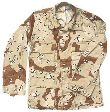 Desert-Camo Wüstentarnung 6-farben Wüstentarnung wie im Golfkrieg und Somalia getragen. Hellbeige, dunkelbeige, hellbraun, dunkelbraun mit weissen und schwar-zen Tupfer. Poly/Co S - XL NSN No.: 8415-01-089-1355 usw.