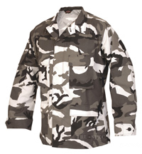 METRO-URBAN auch als City-Tarn bekannt. Der Tarnanzug für die Stadt und andere dichtbesiedelte Gebiete. Gleiches Muster wie woodl. aber in den Farben weiss, hell-, dunkelgrau u. schwarz. Dieser Anzug wurde 1982 anlässlich des Multinationalen-Einsatzes der US-Marines in Beirut entwickelt und wird heute auch von der Polizei (SWAT-Teams) in Städten getragen. Nur Poly/Co lieferbar.