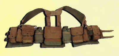 Olives schweres, sehr starkes Webmaterial mit vielen Taschen. 4 Magazintaschen für M-16 od. Galil, à je 2 Mag. 2 Handgranatentaschen 1 Tasche für Rauchgranate 1 Tasche für 1-Aid Kit 1 Tasche über dem Gesäss = Total 9 Taschen Breite Schulterträger, sehr gutes Hüftpolster, welche eine Gewichtsabstützung auf die Hüfte ermöglicht. Stufenlos einstellbar und viele weitere Befestigungspunkte