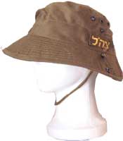 I.D.F. Buschhut (Raful) genannt. Ähnlich dem US - Dschungelhut, aber aus 100 % Baumwolle, daher leichter, mit Kinnschnürung und aufgenähtem I.D.F. Schriftzug.