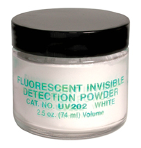Feines Pulver das fein aufgetragen, unsichtbar auf die exponierten Gegenstände apliziert wird. Bei jedem Kontakt mit dem behandelten Gegenstand bleibt das Pulver unbemerkt an den Händen der betreffenden Person haften. Wird zur Identifikation oder der Spurensicherung mit UV-Strahlen sichtbar gemacht. (beste Ergebnisse in abgedunkelten Räumen).Da das Pulver vom "Täter" unbemerkt haften bleibt, wird dieser seine Hände nicht, oder Nur unzureichend waschen. Auch das tragen von Handschuhen bietet nur unzureichend Schutz, da das Pulver bei jeder Berührung unsichtbar verteilt und an anderen Körperstellen, z.B. Jackenärmeln, Hosentaschen etc. haften bleibt. Bleibt für mehrere Std. bis Tage feststellbar. Anwendungsmöglichkeiten: Türfallen, Computer . Keyboards, Kassen, Velos, Briefkasten, etc. Anwendung im Freien: Das Pulver mit Vaseline-Creme vermischen und hauchdünn aufgetragen ergibt eine Wetterfeste Markierung im Freien. Tausende von Möglichkeiten. Inhalt 2 OZ = 62 Gramm.