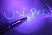 Filzschreiber mit unsichtbarer UV Tinte. Zum unsichtbaren Markieren von Gegenständen. Die Markierung wird erst unter der UV-Lampe sichtbar.