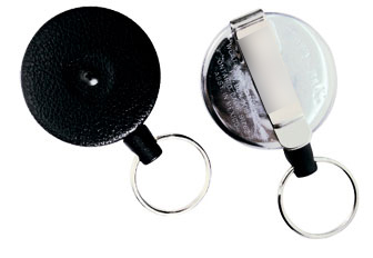 Badge Halter aus Top Leder. Massives Stahlclip zum festmachen an Jacke, Hemd, Hosenbund, Gürtel usw.