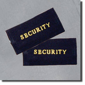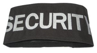 Schwarze Armbinde mit weisser Stickerei. SECURITY KONTROLLE SICHERHEITSDIENST