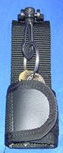 Halter mit Stahlclip für Jacke oder Gürtel oder mit Dicker, starker Perl-Kette am Hals zu tragen. Hält auch mal ein Gerangel aus. Ist aber Würgesicher und zerreist vorher.