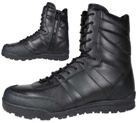 | Combat Mid | Sehr leichter Dienst- bzw. Freizeitschuh mit halbhohem Schnitt. Kombination Leder/1150 Denier Nylon, weicher gepolsterter Veloursleder kragen, feuchtigkeitsabsorbierendes Komfort Futter, rostfreie Schnürungsösen, dämpfende EVA- Zwischensohle mit Leichtstahlplatte für maximale Torsionsstabilität. Fersenstabilisator, neuartige, griffige und abriebfeste Carbongummi Laufsohle. Vernähter Zehen- und Fersenschutz. Farbe: schwarz