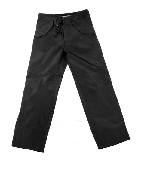 Doppelte Knie und Gesäss verklebte Nähte wie bei Gore. Unten Knielanger Reissverschluss und Klett-Flapp. Bund mit Bändeli, Klett-Flapp und Reissverschl. Hosenstall. Durchgriffe zu Hosentaschen mit Druckknopf Flapp.