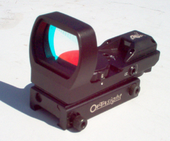 | CH 90 Optasight Leuchtpunktvisier | Swiss Equipment | Leuchtpunktvisier für Weaver/Picatinny Schiene. Metallgehäuse mit grossem Zielfenster. Mit 4 versch. Absehen.: Leuchtpunkt, Kreis mit Punkt, Fadenkreuz und 3-Strich-Kreuz. Das grosse Fenster erlaubt eine verzugfreies Bild. Nach erblicken des Zieles wird die Waffe gehoben und mit beiden Augen weiterhin aufs Ziel blickend, der auf das Sichtfenster projizierte Punkt auf das Ziel gerichtet. Da keine optische Vergrösserung erfolgt braucht sich das Auge nicht neu zu fokussieren, dies ergibt eine sehr schnelle und sichere Zielerfassung und die Ersttreffer Wahrscheinlichkeit unter Stress steigt erheblich. Durch die tiefliegende Montage und die gestreckte Flugbahn der GP-90 kann das Optasight auf jede übliche Kampfentfernung ohne weitere juistierung oder schrauberei eingesetzt werden. Für Kampfdistanz - 80 m Rotpunkt, für präziese Schüsse - 400 m Fadenkreuz. Die beiden anderen Absehen können je nach Lichtverhältnis und Witterung eingesetzt werden. Acht Helligkeitsstufen, dies erlaubt den Einsatz im finsteren Keller wie in der grellen Sonne von vorne, seitlich oder hinten. Die Wellenlänge ist so gewählt, das weder die Sonne noch das Neonlicht das projizierte Bild überlagern. Da das Visierbild nur auf das Sichtfenster projiziert wird ist dieses nur für dich als Schützen zu sehen. Die Sichtscheibe ist beschichtet was ein reflektieren verhindert. Betrieb mit 2 St. Knopfzellen mit unheimlicher Lebensdauer. (Genaue Angaben folgen wenn unsere esten Batterien Leer sind.) Im Gegensatz zu Zielgeräten in Röhrenform wird der Tunnelblick verhindert und das ganze Zielgebiet eingesehen, dadurch wird das bekämpfen von mehreren und beweglichen Zielen in einer sehr kurzen Zeit erreicht. Dies erhöht die Ueberlebensfähigkeit im Gefecht insbesondere im dynamischen Ortskampf wesentlich.