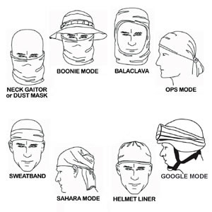 Preiswerte Kopie des Recon Wrap von Spec.Ops. Schlauchförmiges elstisches Tuch aus High-Tech Polyester. Vielfältig im Gebrauch als Kopftuch, Halstuch, Stirnband, Balaclava, Staubschutz, Watchcap, Turban, Armschlinge, Helmliner usw. Ausgezeichnete Temperatureigenschaften, kühlt bei Hitze, wärmt bei Kälte. Handhabungsweise wie Spec.Ops Recon Wrap